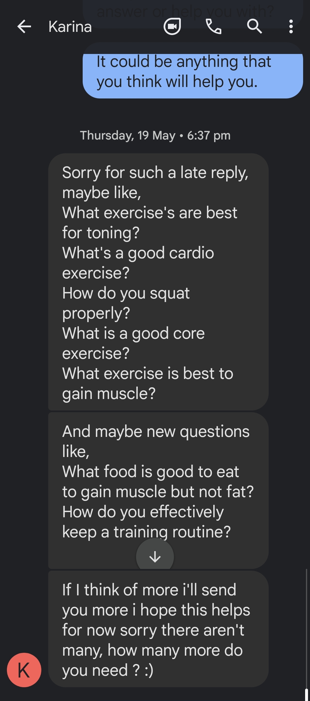 From my feedback, I realised that I had too much factual information in my draft prototype, so I deleted some unnecessary information. The additional fact information will be presented if clients ask for it; the AI will only answer the questions without any other irrelevant information.In the first version of the prototype, my AI was one part of a robot that was only accessible inside a gym; from the feedback, I discovered that it would be better if it was an app on Ipads, mobiles or pc that could be used at home as some clients suggested that they may want to work out at home sometimes.The client also suggested that the tutorial animation can be visually improved with shades or colours. Since I ran out of time doing the animation, I did my best to add shades to every frame. If I were to develop this project further, I would make the time-consuming features first, then enhance the project visually and add valuable features.
